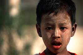 |  little boy with Thanakha-paste in his face, Bagan 051-MY1-11