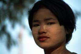 |  young woman with Thanakha-paste in her face, Bagan 051-MY1-25