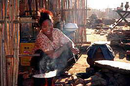 |  woman eating infront her poor house, Nyaung U 051-MY2-17