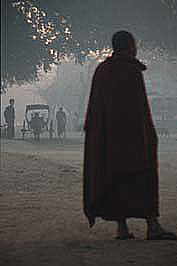 monk waiting for horse-coach in the morning, Bagan 051-MY3-05