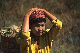 |  woman with vegetables-basket on way to market, Kalaw hills 051-MY3-13