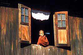 |  young monk looks outside, Kalaw hills 051-MY4-04