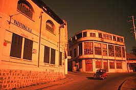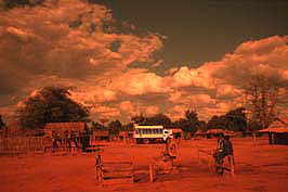 |  Taxi-Brousse (former truck) on red street, sunset 051-M1-42