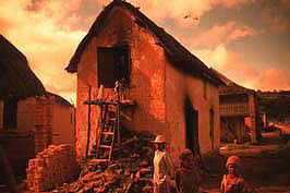 |  girl & boy infront their woodden home, near Manakara 051-M3-03
