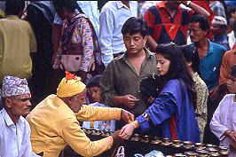 ![]() Janai Purne Festival, sacred yellow thread, Patan 046-0011 | ![]() Prayer wheels, Mahaboudha temple 046-0051 | ![]() Durbar Square, elephants, Patan 046-0056 |