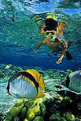 boy snorkler, butterflyfish, Big Island