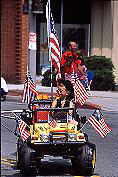 4th July Parada, boy in mini jeep,