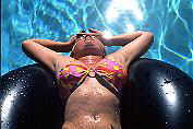 Woman in pool on inner tube